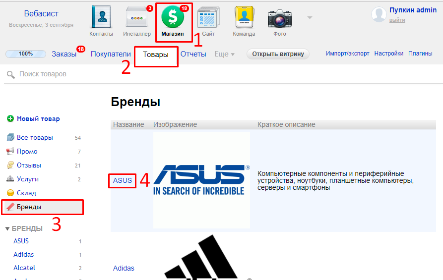 Зайдите в админ. панели в приложение Магазин → Плагины → Бренды.