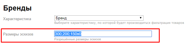 2. Для настройки "Размеры эскизов" установите значение "300;200;150x0":
