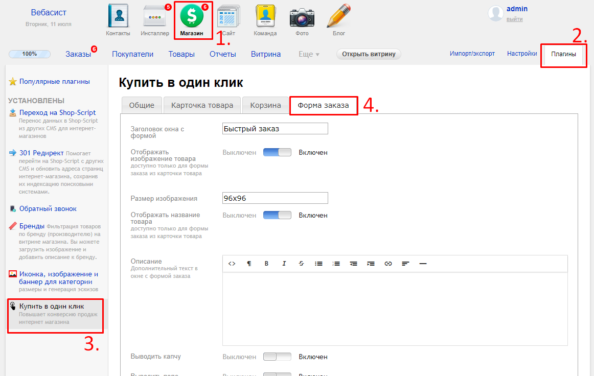 Ссылка на плагин в магазине Webasyst (приобретается отдельно)