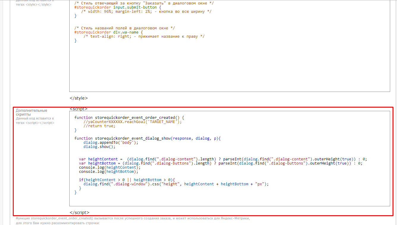 В пункте "Дополнительные скрипты", вставьте код из файла без флажка на согласие обработки данных или с флажком на согласие обработки данных :