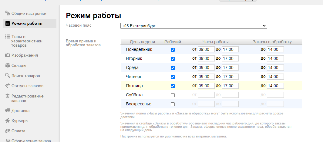 3) Режим работы формируется из приложения Магазин - Настройки - Режим работы: