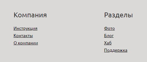 - аналогично для блока#2 с адресом создайте блок с ID footer_links_sections, в содержимое блока скопируйте код из файла footer.links-section.html.